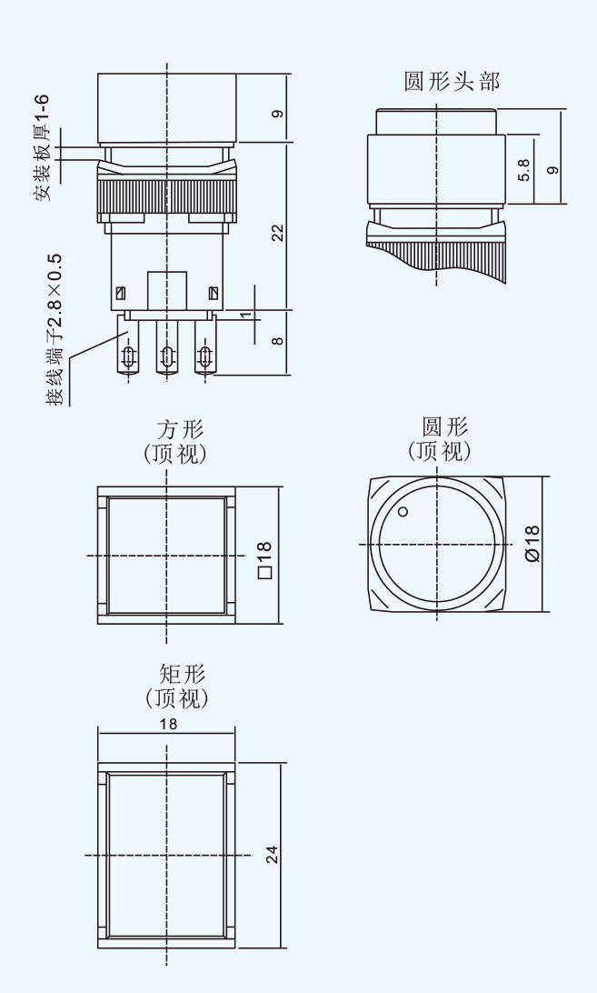 工作状态 接点 型号 颜色 外形尺寸