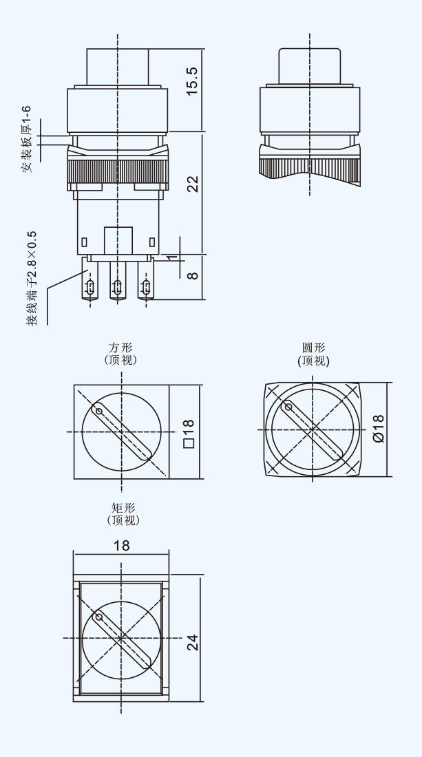 工作状态 接点 型号 颜色 外形尺寸