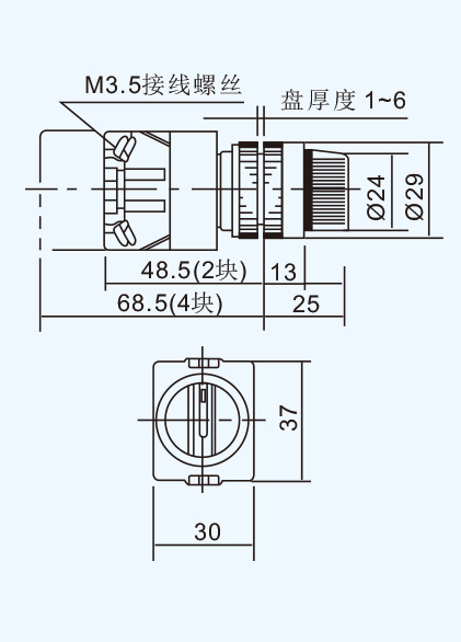 二位置 短柄旋钮 LAY37-11X2 LR保持式