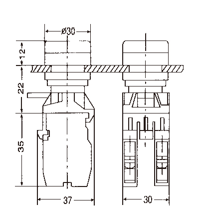 可装触点数 颜色 型号及动作说明 外形尺寸