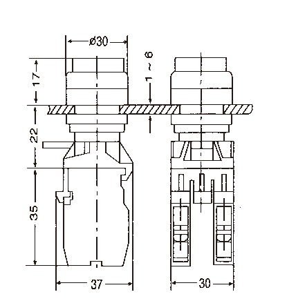 可装触点数 颜色 型号及动作说明 外形尺寸